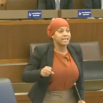 Participants dressed like the suspect, wearing hooded jackets and face masks. One wore a shirt with the message that was on the bullet casings: “Deny, Defend, Depose.”